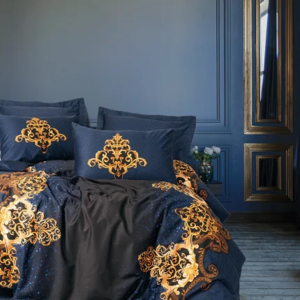 Спално бельо „Tutsu Lacivert” – Palace Saten 300TC – Cotton Box- Памук сатен-6 части