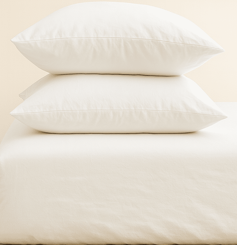 „Бял“ Долен чаршаф с ластик + 2 калъфки – Памук Ранфорс – за легло 180×200 см