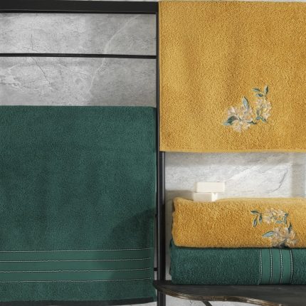 Комплектът „Синя Вълна“ носи усещане за чистота, свежест и морска прохлада. Стилният син цвят е едновременно класически и универсален, а сатенираната светлосиня лента с релефен десен добавя изискан детайл. Изработени от 100% памук с висока плътност, кърпите абсорбират влагата бързо и остават меки дори след многократни изпирания. Щадящи към кожата, устойчиви и практични – идеални за ежедневна употреба или като подарък. Комплектът включва: