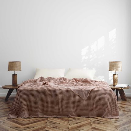 Внесете уют, нежност и финес във вашата спалня с луксозното покривало „Сини Листа“. Изработено от 100% висококачествен памук, то осигурява естествена мекота и комфорт през цялата година. Покривалото впечатлява с изискан релефен флорален дизайн, съчетаващ деликатни листни мотиви и фина дантелена кантовка по краищата.