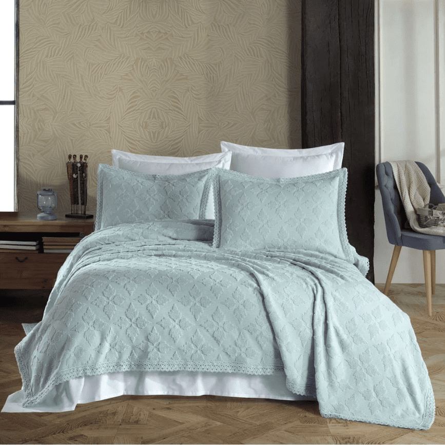 „Ментова Елегантност“ Памучно покривало с две калъфки – 230×250 см