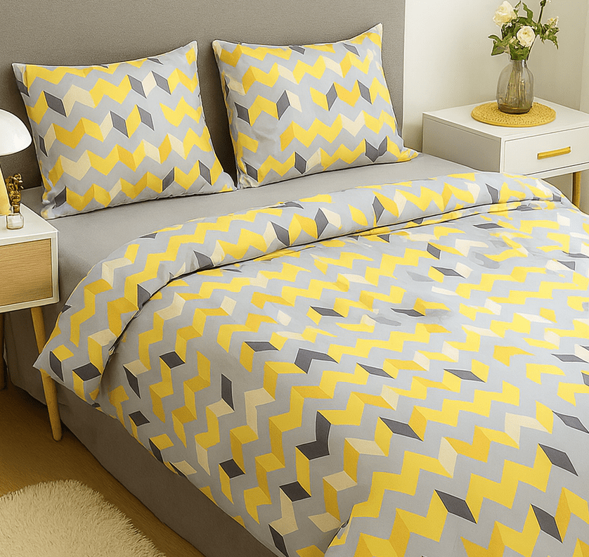 Вдъхновява със своя енергичен и съвременен дизайн в жълто, сиво и бяло – перфектна комбинация между топлина и модерна геометрия