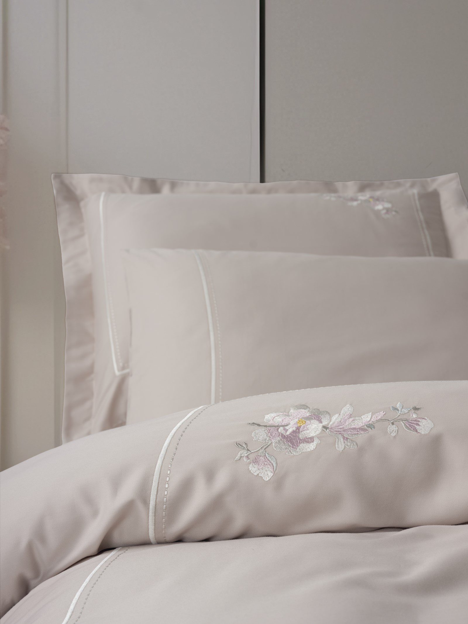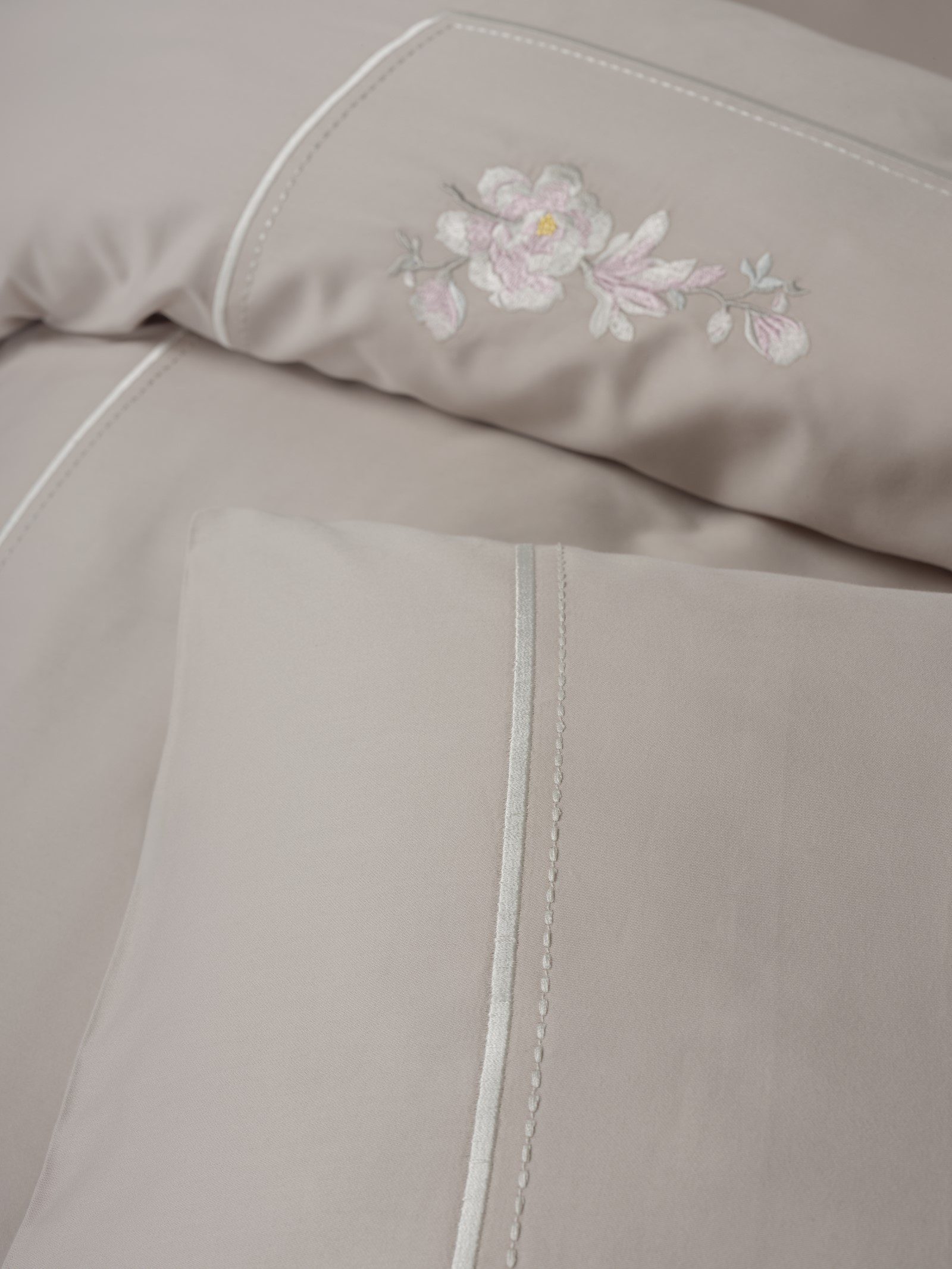 „Alameda Lila“ е луксозен модел от серията Alameda, изработен от фин памучен сатен и допълнен с нежна декоративна бродерия, представен в мека лилаво-пудрена цветова гама. Комплектът е създаден за хора, които търсят романтична визия, изискан стил и максимален комфорт.