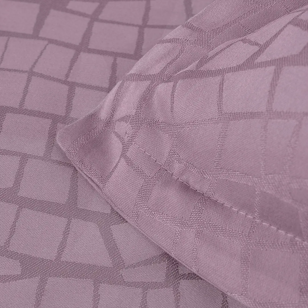 Фин жакардов десен с абстрактна мозаечна структура, вплетен директно в плата. Орнаментът е релефен, ненатрапчив и равномерен, създаден чрез тъкане, а не чрез печат. Това придава дълбочина, луксозно излъчване и усещане за висок клас изработка.