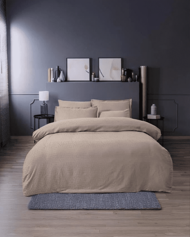 Модерен лукс с хотелско излъчване. Изключително подходящ за съвременни, минималистични и неокласически интериори, както и за спални в earth tones и natural luxury стил. Комбинира се отлично с тъмни стени, дървени подове, метални и златисти акценти. Създава усещане за спокойствие, изисканост и подреден уют.