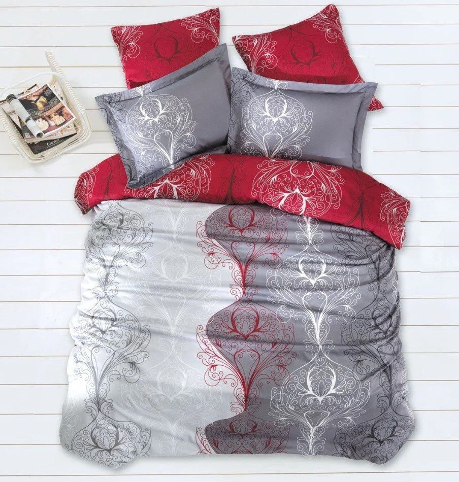 Луксозен спален комплект от памук сатен – Class by Bahar Tekstil, „Vintage Red“- 6 части