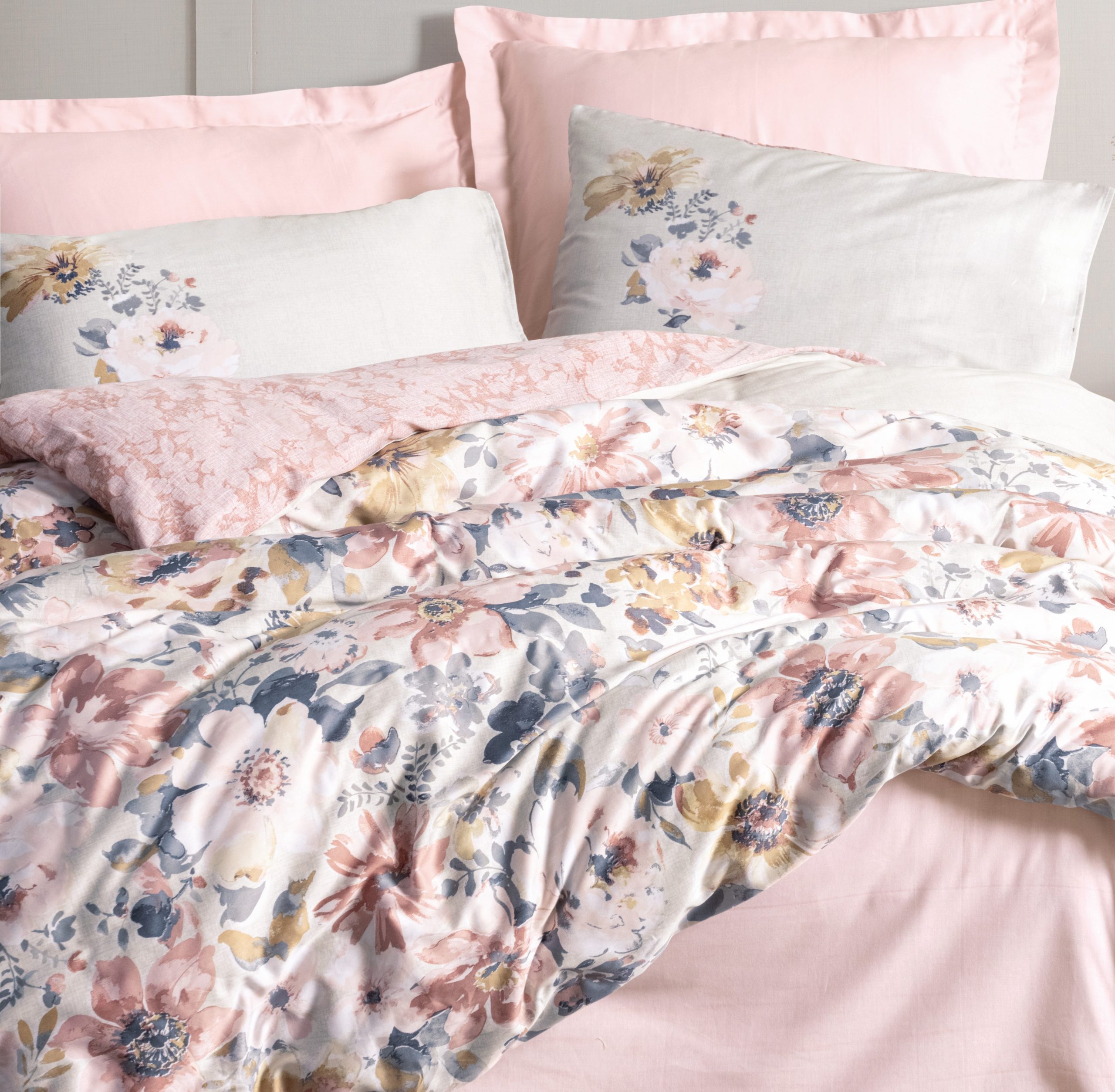Спално бельо „Dalya Pudra“ Family – Памук Сатен -7 части – с 2 единични плика