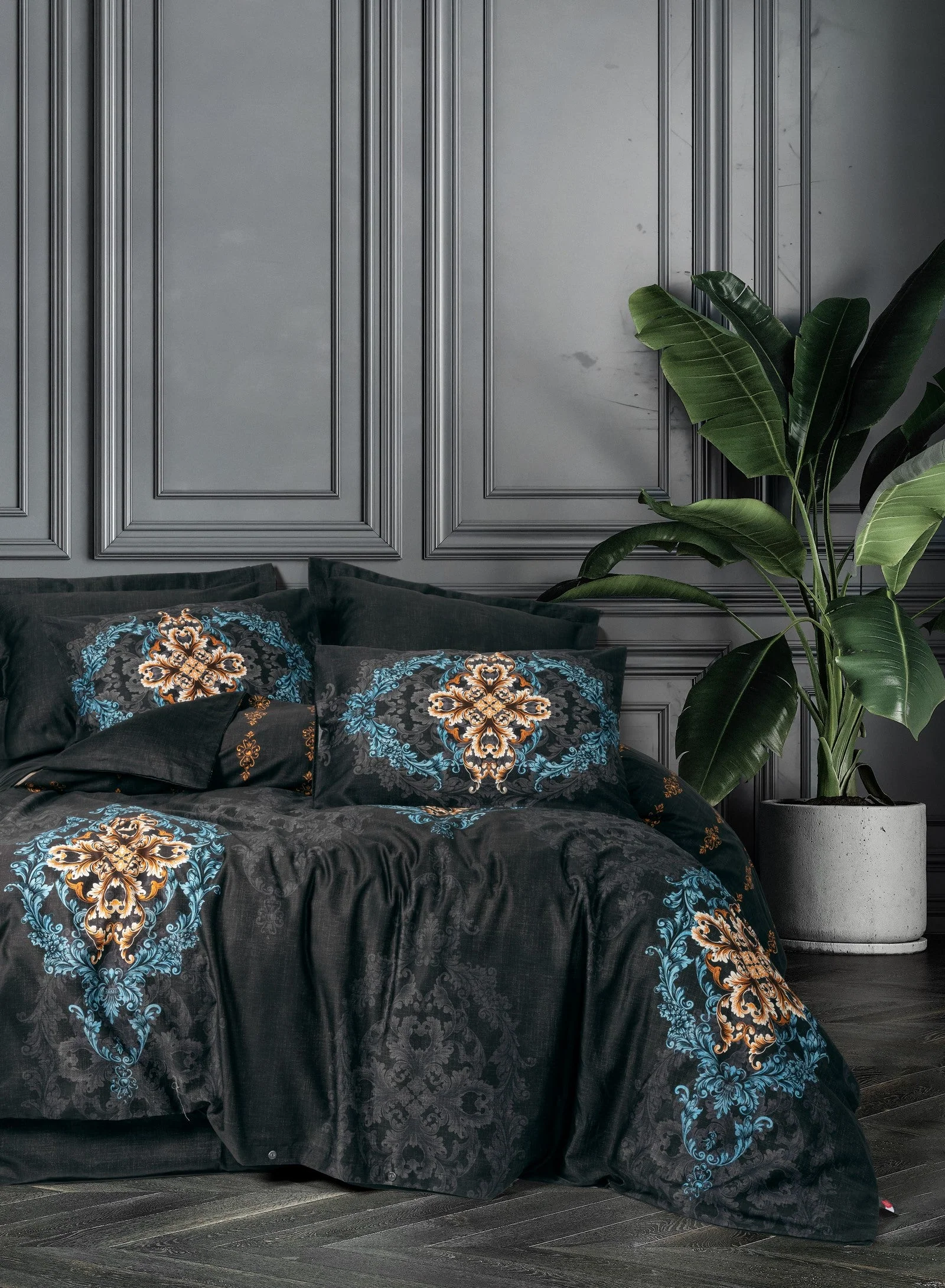 Спално бельо „Dorhan Siyah” – Palace Saten 300TC – Cotton Box- Памук сатен-6 части
