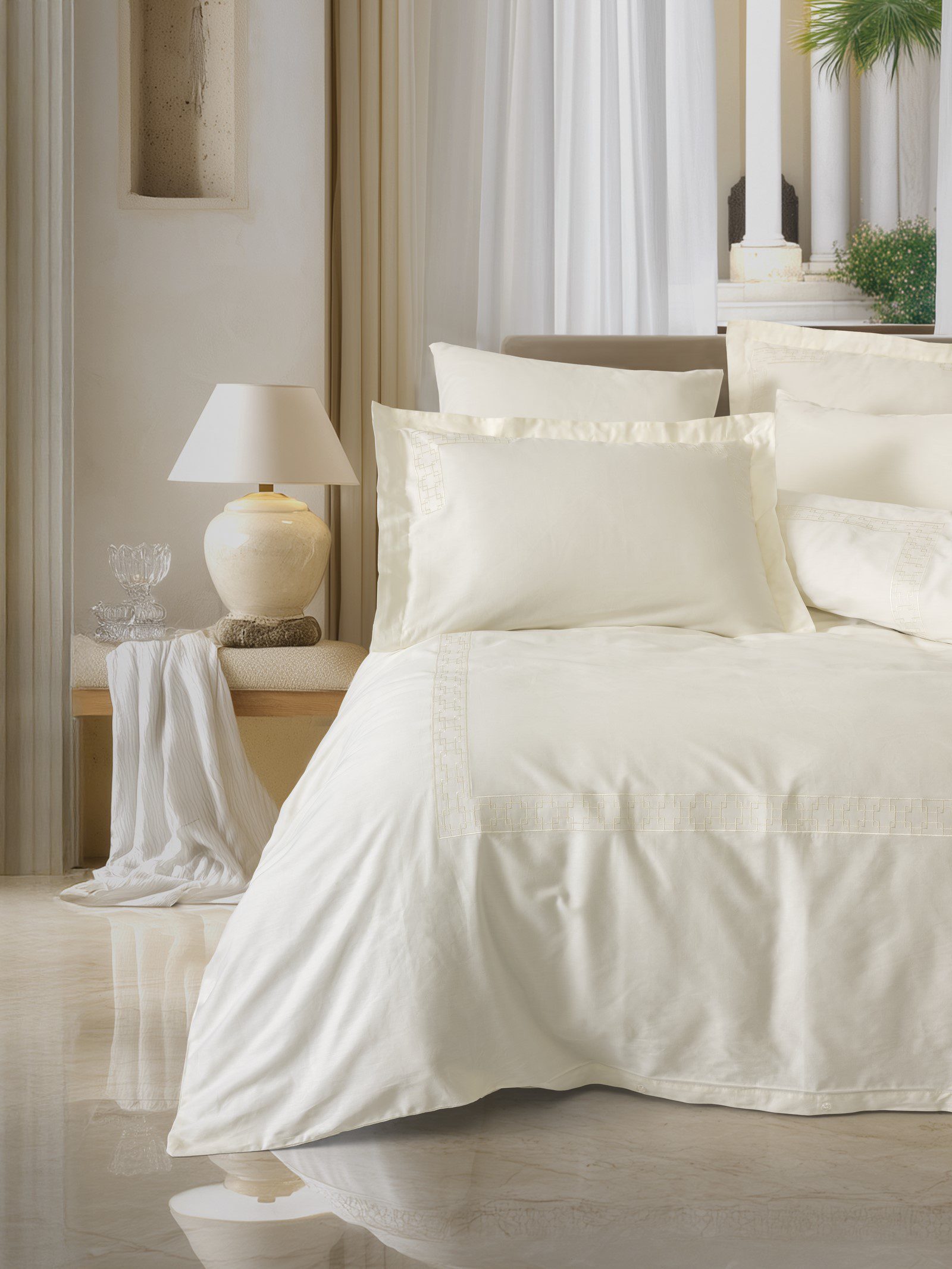 Cotton Box – Luxe Ekru – Бродиран сатенен спален комплект – 6 части