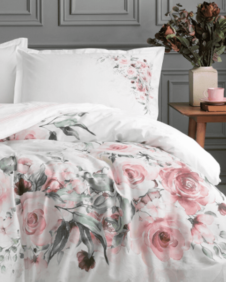 Изисканият баланс между бялата основа и меките цветни щрихи придава на спалнята ви свежест, хармония и уют, докато качеството на памук ранфорс гарантира лекота и дълготрайна издръжливост. Материята е мека, дишаща и нежна към кожата, осигурявайки ви комфортен и пълноценен сън.