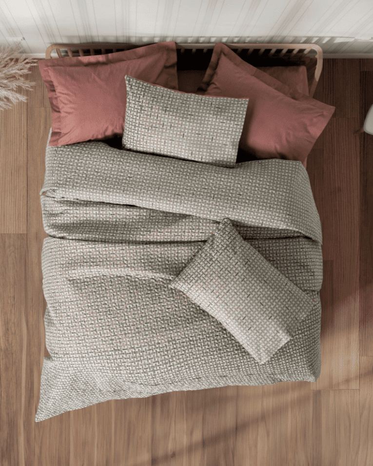 Материята от 100% памук ранфорс гарантира комфорт и свежест през всяка нощ. Този комплект е перфектният баланс между съвременен дизайн и топла домашна атмосфера.