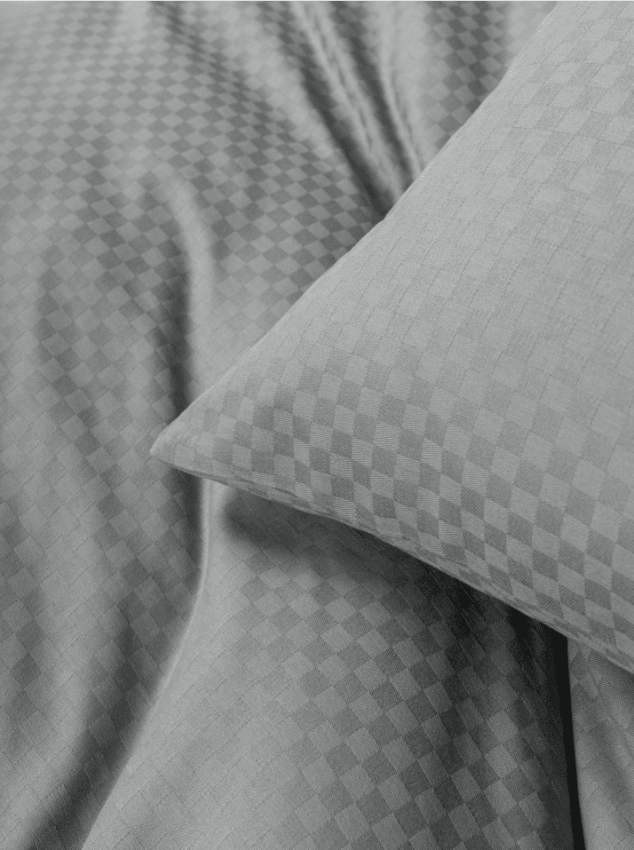 Нежният сив нюанс създава усещане за спокойствие и хармония, а елегантният каре-десен придава фин обем и текстура.