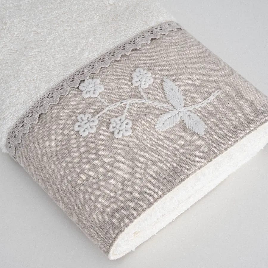Моделът е изискан и балансиран, съчетаващ натурални материи с фини декоративни елементи. Комбинацията от ленени детайли, ръчна бродерия и минималистичен дизайн създава усещане за бутиков продукт с висока класа.