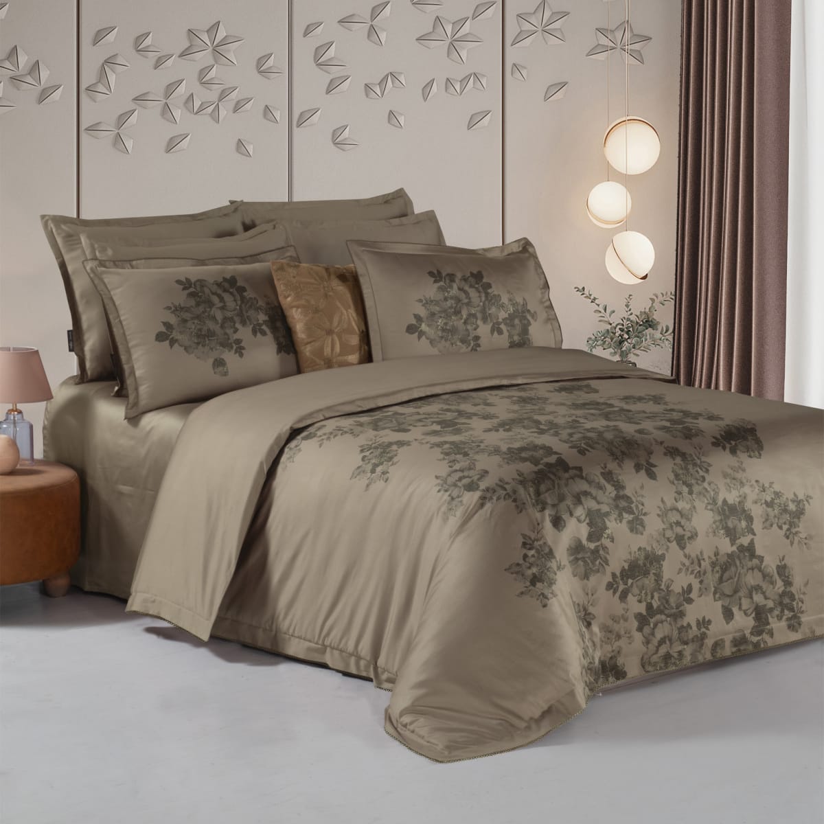 Дизайнът е изключително изискан – топъл капучино нюанс, комбиниран с деликатни флорални мотиви, които създават усещане за класа, баланс и тишина. Това е стил, който не натоварва, а подчертава – знак за вкус и внимание към детайла.