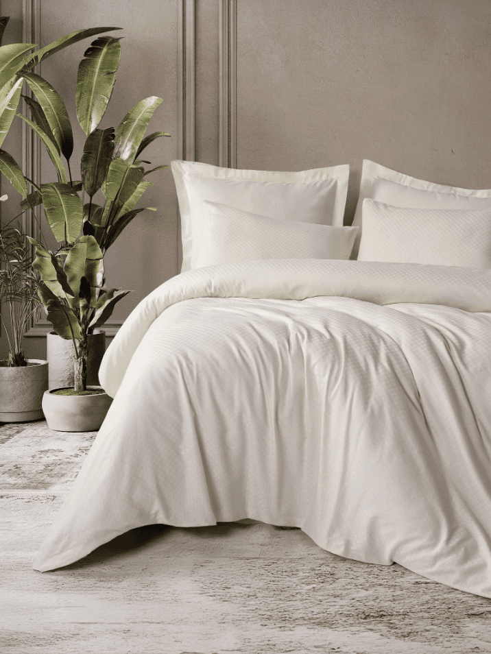 „Plaid Krem“ е символ на елегантна простота и лукс в детайла. С изчистен дизайн и деликатен шахматен жакардов ефект, този спален комплект придава усещане за плавен уют и светлина в спалнята. Кремавият цвят носи хармония, чистота и топлина, подходящ за всякакъв интериор – от класически до минималистичен.