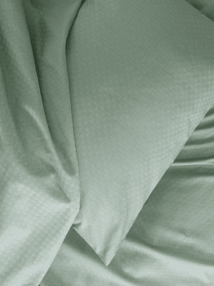 „Sage Green“ носи хармония и елегантност във вашата спалня с успокояващия си ментово-зелен нюанс и фина тъкана текстура. Нежният квадратен жакардов мотив придава дълбочина и изисканост, което го прави подходящ за модерни, минималистични и природно вдъхновени интериори. Едноцветният дизайн създава усещане за чистота и свежест.