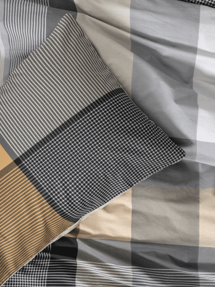 „Torvi Beige“ е създаден за почитателите на съвременния минимализъм и естествените тонове. Десенът съчетава елегантно каре в нюанси на бежово, графитено сиво, антрацит и горчица, които се преплитат в изчистена, но запомняща се композиция. Всеки детайл е балансиран така, че да придаде усещане за хармония, уют и стилна сдържаност.