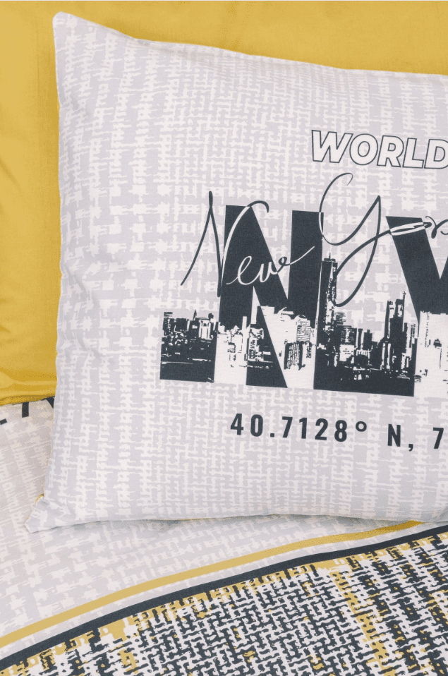 „Worldwide Hardal“ съчетава градски стил и младежка енергия в едно изключително модерно предложение. Десенът е вдъхновен от Ню Йорк, с надписи NYC и координати на града, вплетени в комбинация от жълто, сиво и бяло. Визията се допълва от каре в долната част – модерен и динамичен акцент, който внася усещане за движение и характер.